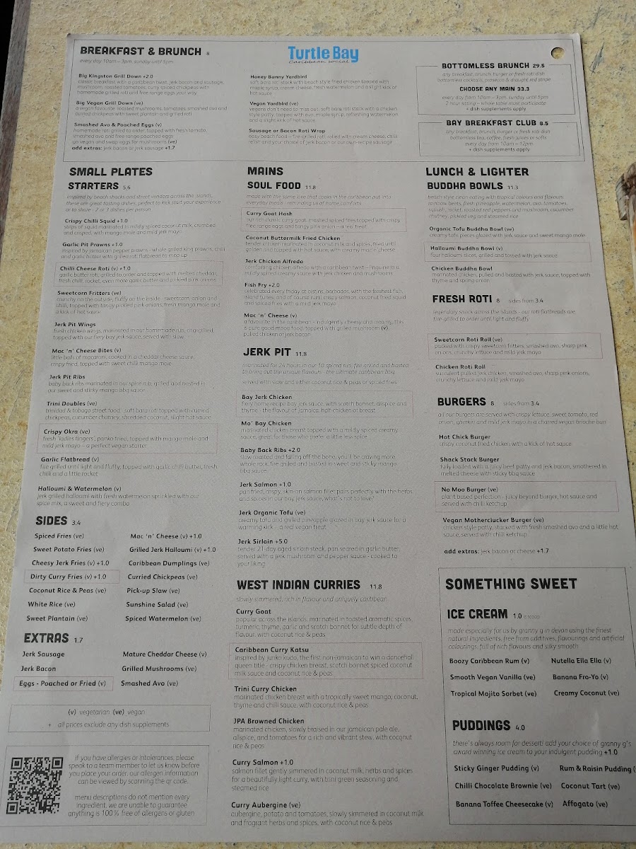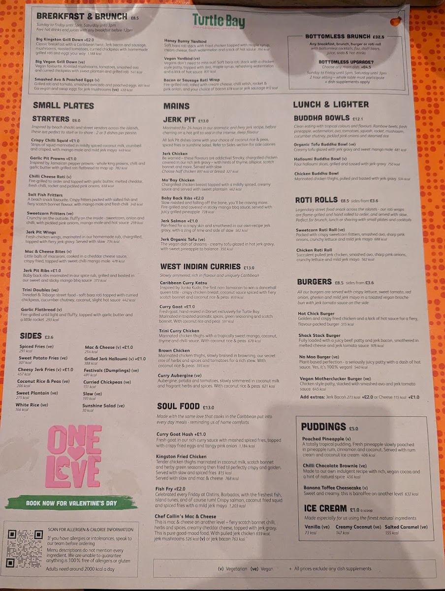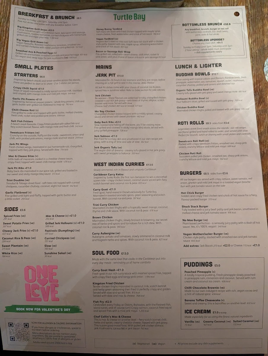 The standout feature of the Turtle Bay Walthamstow menu is its extensive selection of traditional Caribbean dishes. From the Jerk Chicken to the Curry Goat, each dish is packed with bold, spicy flavors that define Caribbean cuisine. The jerk chicken, in particular, is a must-try, with its perfect balance of heat and smoky sweetness. The menu also caters to vegetarians and vegans, offering creative options like the Aubergine Roti and the Vegan Jerk Jackfruit.