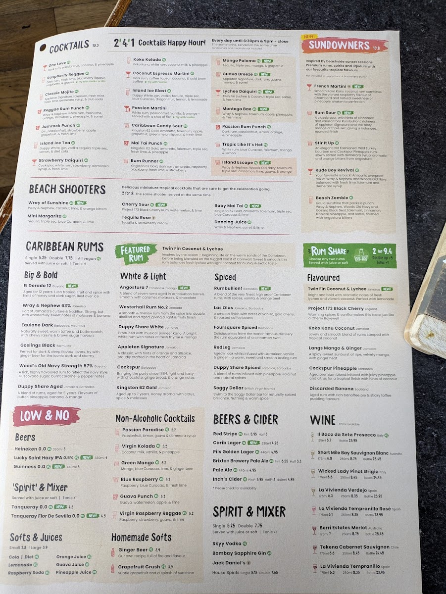 For those looking to complement their meal with a refreshing drink, the cocktail menu is another highlight. With a variety of rum-based drinks, it's easy to find the perfect cocktail to pair with your meal.